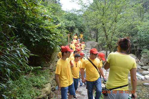 9日上午,大家抵达藏龙百瀑,欣赏浙江最大的瀑布群,真可谓瀑瀑相连,一步一景,沿途不禁纷纷留影纪念。下午我们开始了拓展训练,过程欢乐不断,整个活动考验每个成员之间的默契程度、协作能力。场面热烈,气氛活跃,将培训活动推向高潮!